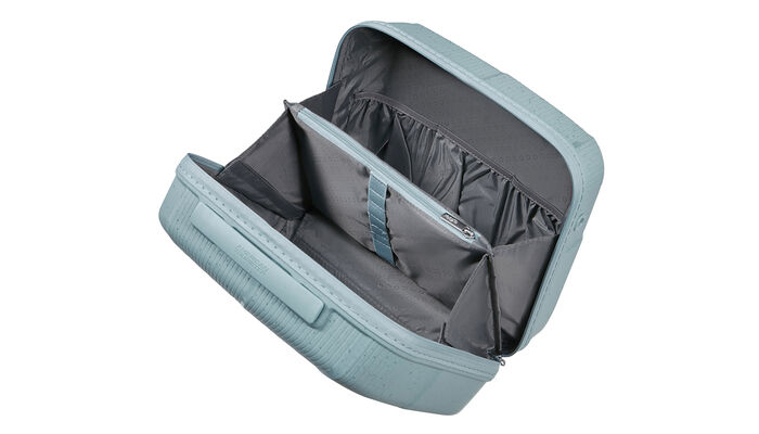 • 83 % du poids de la coque extérieure est constitué de polypropylène recyclé après consommation. 100 % du poids de la doublure intérieure, de l'extensibilité et des fermetures à glissière sont fabriqués à partir de plastique PET recyclé après consommation, en utilisant 8 bouteilles recyclées de 500 ml.