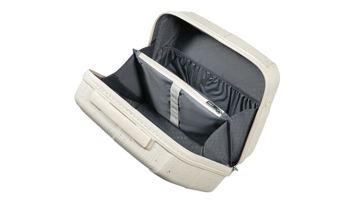 • 83 % du poids de la coque extérieure est constitué de polypropylène recyclé après consommation. 100 % du poids de la doublure intérieure, de l'extensibilité et des fermetures à glissière sont fabriqués à partir de plastique PET recyclé après consommation, en utilisant 8 bouteilles recyclées de 500 ml.