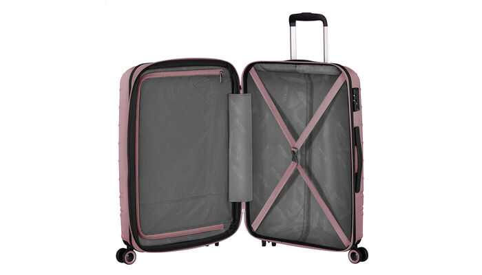 - 100 % (nach Gewicht) des Innenfutters, der Dehnfalte und der Reißverschlüsse bestehen aus recyceltem PET-Kunststoff, der aus 7 recycelten 500-ml-Flaschen hergestellt wurde.