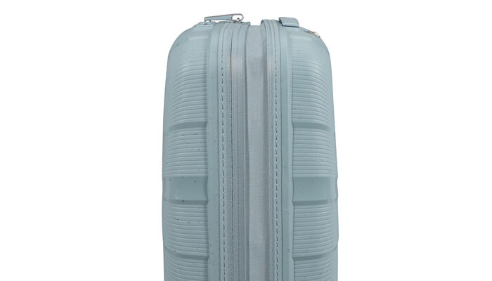 - 83 % (nach Gewicht) der äußeren Schale sind aus recyceltem Polypropylen hergestellt. 100 % (nach Gewicht) des Innenfutters, der Dehnfalte und der Reißverschlüsse bestehen aus recyceltem PET-Kunststoff, der aus 18 recycelten 500-ml-Flaschen hergestellt wurde.