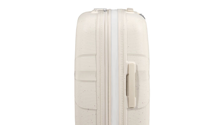 • 83 % (nach Gewicht) der äußeren Schale sind aus recyceltem Polypropylen hergestellt. 100 % (nach Gewicht) des Innenfutters, der Dehnfalte und der Reißverschlüsse bestehen aus recyceltem PET-Kunststoff, der aus 24 recycelten 500-ml-Flaschen hergestellt wurde.