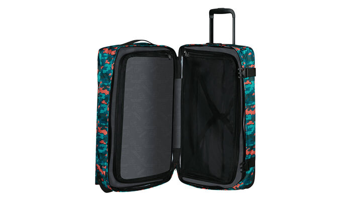 Die Reisetasche verfügt über integrierte Rollen für einfaches Reisen und bequemes Transportieren