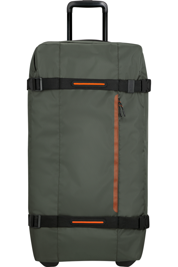 Le sac est équipé de roulettes intégrées pour faciliter les déplacements et le transport.